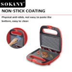 جريل ميكر سوكاني 750 وات موديل SK-08065 هو جهاز عملي وصغير الحجم، لكنه قوي وبيسهل عليكي تحضير السندوتشات والوجبات الخفيفة بسرعة. بقدرة 750 وات هتقدري تسخني وتحمّري الأكل في وقت قصير جدًا من غير ما يلتصق بفضل السطح غير اللاصق.
